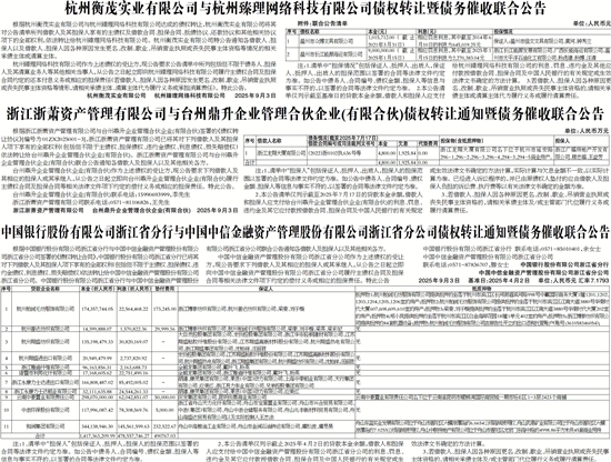 中国银行股份有限公司浙江省分行与中国中信金融资产管理股份有限公司浙江省分公司债权转让通知暨债务催收联合公告