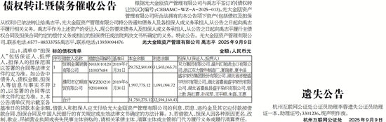 注:1、清单中“担保人”包括保证人、抵押人,担保人的担保范围以签署的合同等法律文件约定为准。如公告中债务人、债权金额、担保人等信息与事实不符的,以签署的合同等法律文件约定为准。2、本公告清单仅列示截至各基准日的贷款本金余额,借款人和担保人应支付给光大金瓯资产管理有限公司的利息、罚息、违约金及其它应付款按借款合同、担保合同及中国人民银行的有关规定或生效法律文书确定的方法计算。3、若借款人、担保人因各种原因更名、改制、歇业、吊销营业执照或丧失民事主体资格的,请相关承债主体、清算主体或主管部门代为履行义务或履行清算责任。