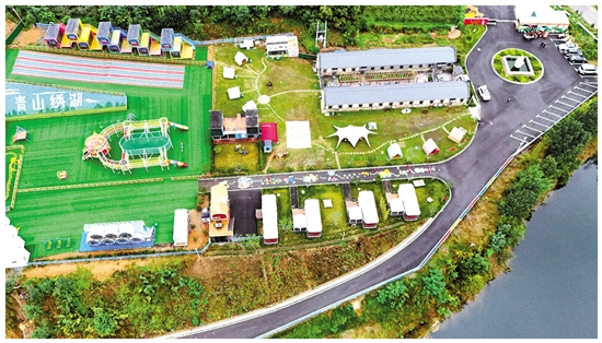 | 这是10月10日拍摄的青岛市南墅镇青山绣湖旅游度假区(无人机照片)。 近年来,山东青岛市南墅镇通过盘活闲置土地资源,改造废旧校舍和废弃矿坑,打造胶东大院、青山绣湖等农文旅融合项目,带动周边村民就业增收。 新华社 丁洪法 摄 |