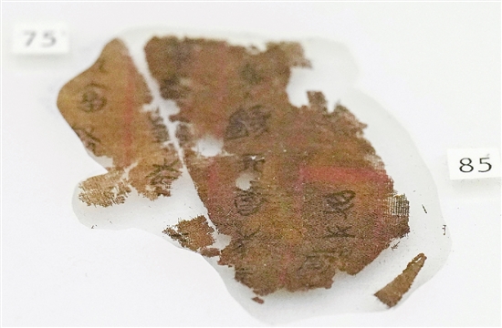 | △在湖南省博物馆拍摄的部分长沙子弹库战国帛书 新华社 薛宇舸 摄 |