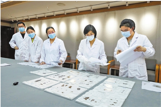 | ▷专家在湖南省博物馆核验长沙子弹库战国帛书 新华社 薛宇舸 摄 |