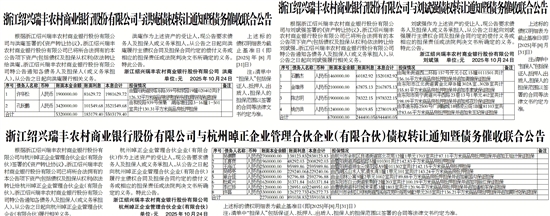 根据浙江绍兴瑞丰农村商业银行股份有限公司与杭州晫正企业管理合伙企业(有限合伙)签署的《资产转让协议》,浙江绍兴瑞丰农村商业银行股份有限公司已将所合法拥有的本公告项下资产(包括债权及担保从权利)依法转让给杭州晫正企业管理合伙企业(有限合伙),浙江绍兴瑞丰农村商业银行股份有限公司特公告通知各债务人及担保人(或义务承担人),从公告之日起向杭州晫正企业管理合伙企业(有限合伙)履行相关义务。