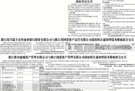 浙江浙农锦城资产管理有限公司与浙江润进资产管理有限公司债权转让通知暨债务催收联合公告