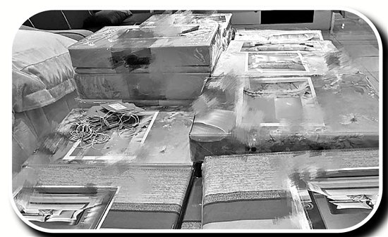 一沓合格证随意放置在一排已经包装好的“四件套”之上。新华社 唐弢 摄