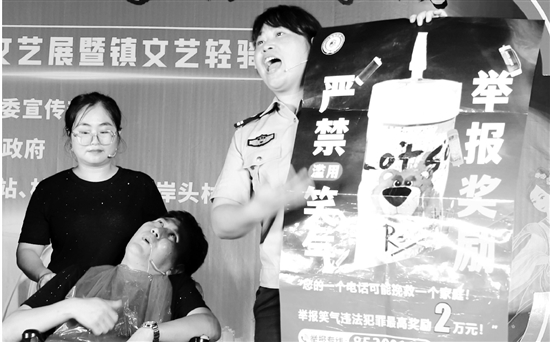 日前,临海公安杜桥派出所民辅警和网格员自编自导自演的小品《隐形毒品·致命快乐》在当地文艺晚会上演出,让更多人了解滥用“笑气”的危害性。