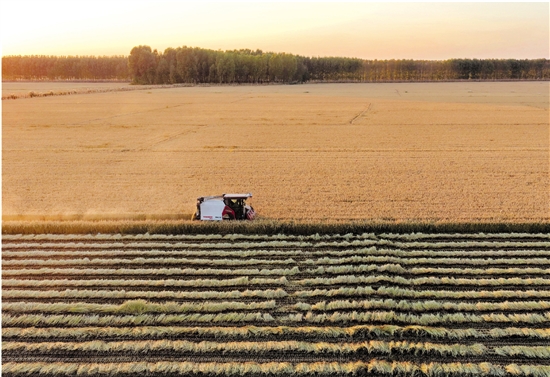 近日,河北省唐山市的水稻迎来收获季,当地农民抢抓晴好天气收获水稻。