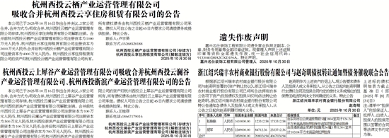 本公司已于2025年10月16日作出合并决议,2家公司合并,合并方式为:吸收合并,杭州西投云栖产业运营管理有限公司存续,杭州西投云享住房租赁有限公司解散注销。合并前杭州西投云栖产业运营管理有限公司注册资本为1000万元人民币,杭州西投云享住房租赁有限公司注册资本为3000万元人民币,合并后杭州西投云栖产业运营管理有限公司注册资本为4000万元人民币。杭州西投云享住房租赁有限公司的资产归杭州西投云栖产业运营管理有限公司所有,所有债权债务由杭州西投云栖产业运营管理有限公司承继。债权人可自公告之日起45日内要求公司清偿债务或提供担保。特此公告。