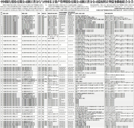 中国银行股份有限公司浙江省分行与中国东方资产管理股份有限公司浙江省分公司债权转让暨债务催收联合公告