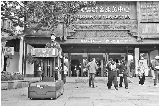 在西栅景区如织的人流中,一座3米多高的多功能瞭望哨格外醒目。