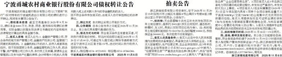 宁波甬城农村商业银行股份有限公司 2025年11月6日