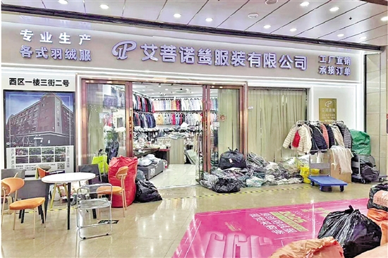 在平湖·中国服装城,艾菩诺鸶占据一楼正厅核心铺位,面积百余平方米。这家店铺每年接待全国客商,订货量约40万件,今年上半年产值达五六千万元。
