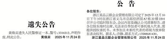 浙江星品云联企业管理有限公司定于2025年12月10日下午3时在浙江省义乌市总部经济园A7栋22楼2201召开公司临时股东会,会议内容是确认公司清算报告,请各位股东准时出席,无法亲自参加者可委托他人代表,需提供授权委托书。未参加且未委托代表的将视为放弃股东表决权利。联系人:许静,联系方式:13588681430。