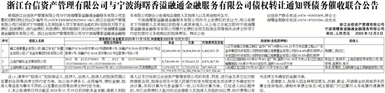 浙江台信资产管理有限公司与宁波海曙香溢融通金融服务有限公司债权转让通知暨债务催收联合公告