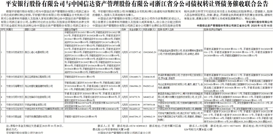 平安银行股份有限公司与中国信达资产管理股份有限公司浙江省分公司债权转让暨债务催收联合公告