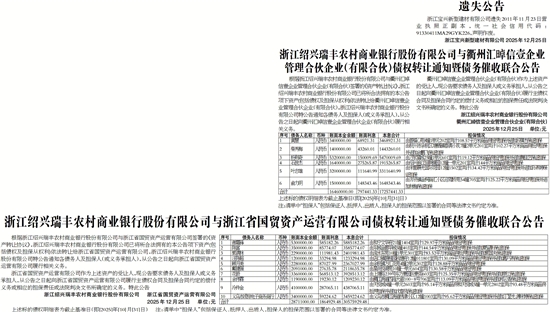 浙江绍兴瑞丰农村商业银行股份有限公司与浙江省国贸资产运营有限公司债权转让通知暨债务催收联合公告