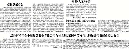 根据绍兴柯桥汇金小额贷款股份有限公司与钟允远、王国勇于2025年12月26日通过淘宝拍卖竞价成交项下债权,于2025年12月29日签订债权转让协议,绍兴柯桥汇金小额贷款股份有限公司将其对公告清单所列借款人及其担保人享有的主债权及担保合同项下的全部权利,依法转让给钟允远、王国勇。钟允远、王国勇作为上述债权的受让方,现公告要求公告清单中所列借款人及担保人,从公告之日起立即向钟允远、王国勇履行主债权合同及担保合同约定的还本付息义务及相应的担保责任。特此公告