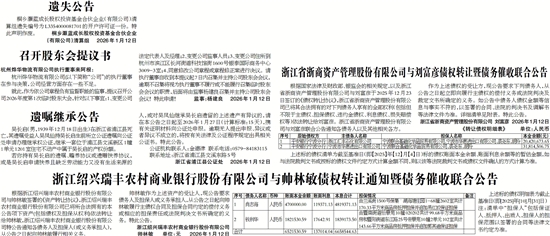 根据浙江绍兴瑞丰农村商业银行股份有限公司与帅林敏签署的《资产转让协议》,浙江绍兴瑞丰农村商业银行股份有限公司已将所合法拥有的本公告项下资产(包括债权及担保从权利)依法转让给帅林敏,浙江绍兴瑞丰农村商业银行股份有限公司特公告通知各债务人及担保人(或义务承担人),从公告之日起向帅林敏履行相关义务。