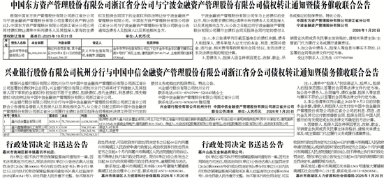 中国东方资产管理股份有限公司浙江省分公司与宁波金融资产管理股份有限公司债权转让通知暨债务催收联合公告