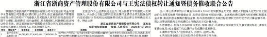 根据浙江省浙商资产管理股份有限公司与王宪法针对金华冠华水晶有限公司签署的《债权转让合同》,浙江省浙商资产管理股份有限公司已将其对下列借款人及其担保人享有的权利(包括但不限于主债权、担保债权、违约金债权、损失赔偿权、利息债权)依法转让给王宪法。浙江省浙商资产管理股份有限公司与王宪法联合公告通知各借款人及担保人以及其他相关各方。