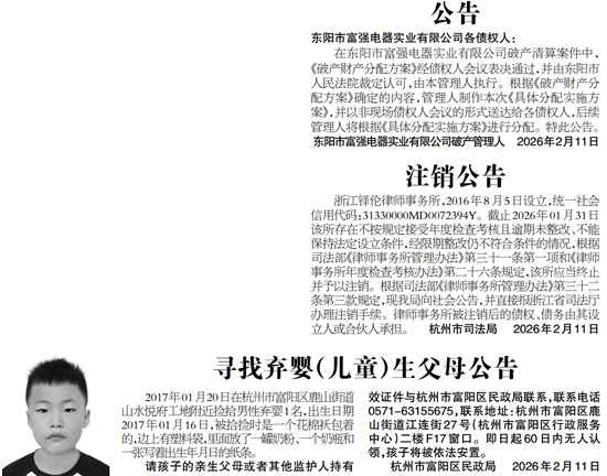 东阳市富强电器实业有限公司破产管理人 2026年2月11日
