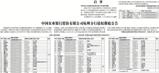 中国农业银行股份有限公司杭州分行 2026年2月12日