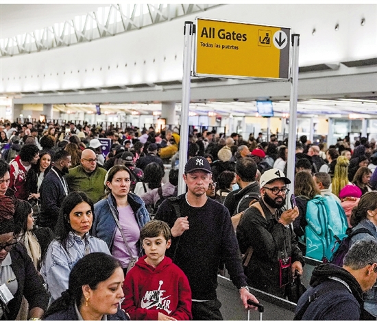 | 3月23日,旅客在美国纽约的约翰·肯尼迪国际机场排队等候安检。 美国国土安全部定于25日向国会通报,该部门“停摆”导致5万名机场安检人员被迫无薪工作,而国土安全部下属运输安全管理局已有460名工作人员辞职。 新华社 美联 |