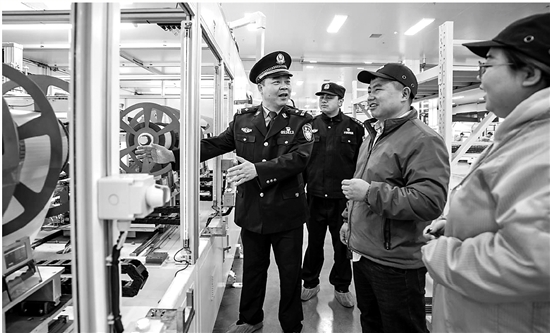 为进一步优化营商环境,近日,长兴县公安局城东派出所“企业警长”以护航“共富”警务为牵引,深入企业,紧盯需求,助力企业高质量发展。 通讯员 方金华