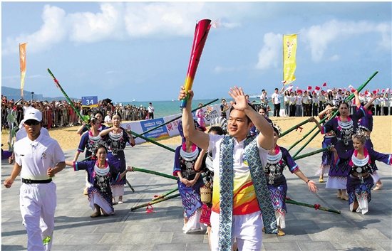 3月30日,第六届亚洲沙滩运动会火炬传递活动在海南三亚举行。