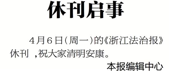 4月6日(周一)的《浙江法治报》休刊 ,祝大家清明安康。