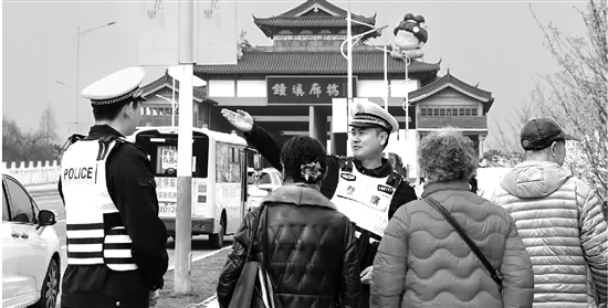 连日来,平湖公安增派警力进驻景区,强化秩序维护与便民服务。执勤交警为游客讲解游览路线与出行提示,以暖心服务守护市民踏青赏樱。 通讯员 江南乾