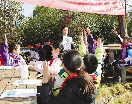 近日,仙居县人民法院神仙居旅游法庭“四色普法课堂”开课,通过普法宣传与劳动实践相结合的方式,在寓教于乐中厚植生态文明理念,让法治意识在孩子们心中生根发芽。 通讯员 张露也 摄