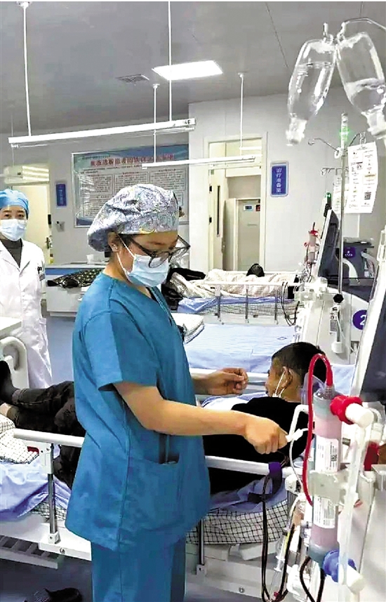 | 患者(右)在宁夏同心县医疗健康总院下马关分院进行透析 |