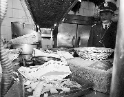 切菜台上残留烂菜叶炸好的鱼放在清洗池