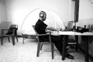 曾德溪在租住的民居里上网,与国内家人的联络主要靠网络,上网占据了他的主要业余时间。
