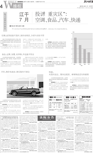 江干7月投诉“重灾区”:空调、食品、汽车、快递
