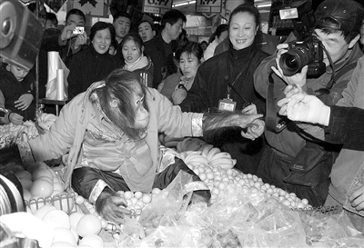 2005年1月30日,杭州野生动物世界的猩猩逛超市