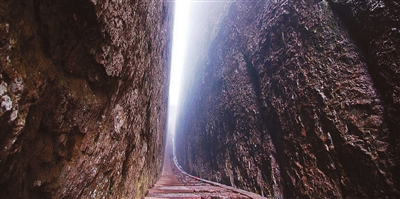 江郎山被誉为“神州丹霞第一奇峰”。三爿石四周被陡崖环绕,在500米海拔上又高耸起319米。两峰之间的巷谷仅3.5米宽,为“全国一线天之最”。
