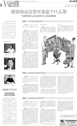 【主持人】国内曾有以损害商业信誉而追究记者责任的案例发生,其实,记者可能碰到的还有其他有关毁誉的罪名,如诽谤等。鉴于记者负有新闻监督的特殊职责,是否可以对记者作些特别规定?