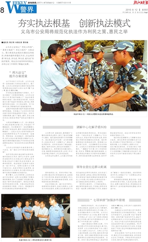 8月10日,义乌市委常委、公安局长吴益中对记者说“:这两大法宝增强了民警办案的积极性,加大了法制部门的监督力度,促进了案件实际质量提升,使执法办案成效评价标准更为合理,对重点执法单位执法监督掌控力度进一步加大,促进基层所队自觉做到执法质量和数量并重。”