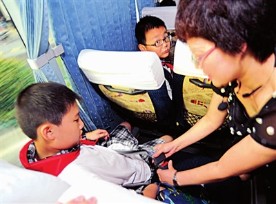 排好队,在老师的带领下,同学们开始依次上车。当天,有40多名四年级学生新“入队”,第一天乘校车。为此,熊老师特别关照:“新来的同学请注意,上车坐好后,第一件事就是系好安全带,路上不要站起来走动。”