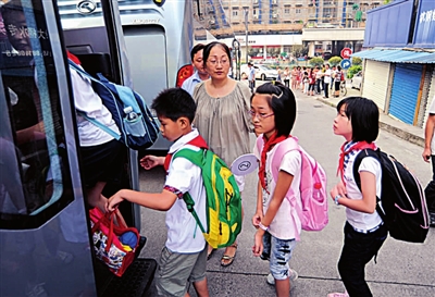 13日早晨6点半,初阳冉冉升起,杭州半山路上的杭钢健身中心门口渐渐热闹起来。省教科院附属小学的校车将在这里接上151名小学生,前往学校。